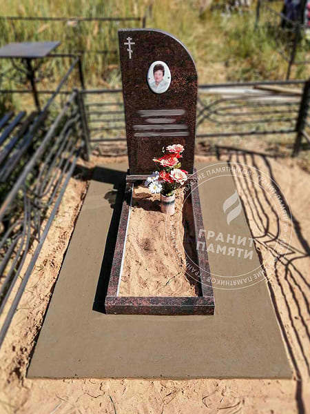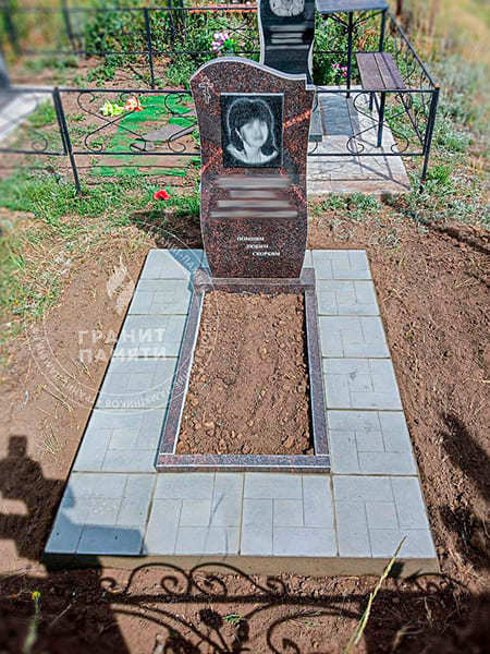 1. Комплект памятника из высококачественного гранита Винга (стела 120×60×8 см, тумба 70×20×15 см, цветник 120×70 см).