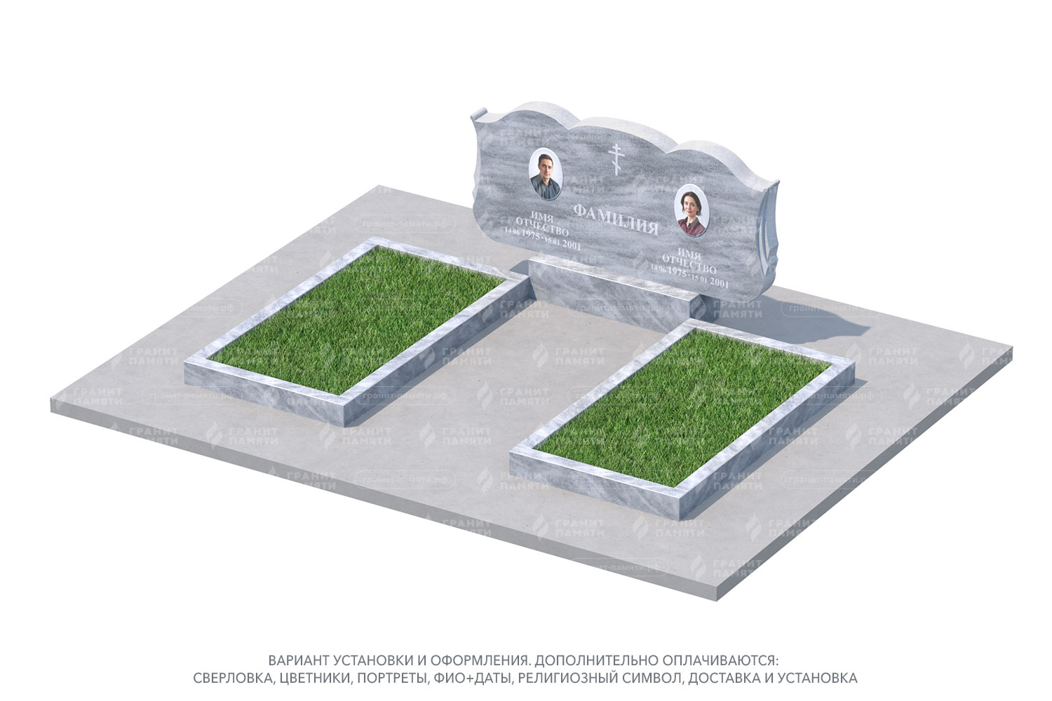 Форма и стиль — возможность выбора среди горизонтальных, вертикальных, семейных или мемориальных памятников.