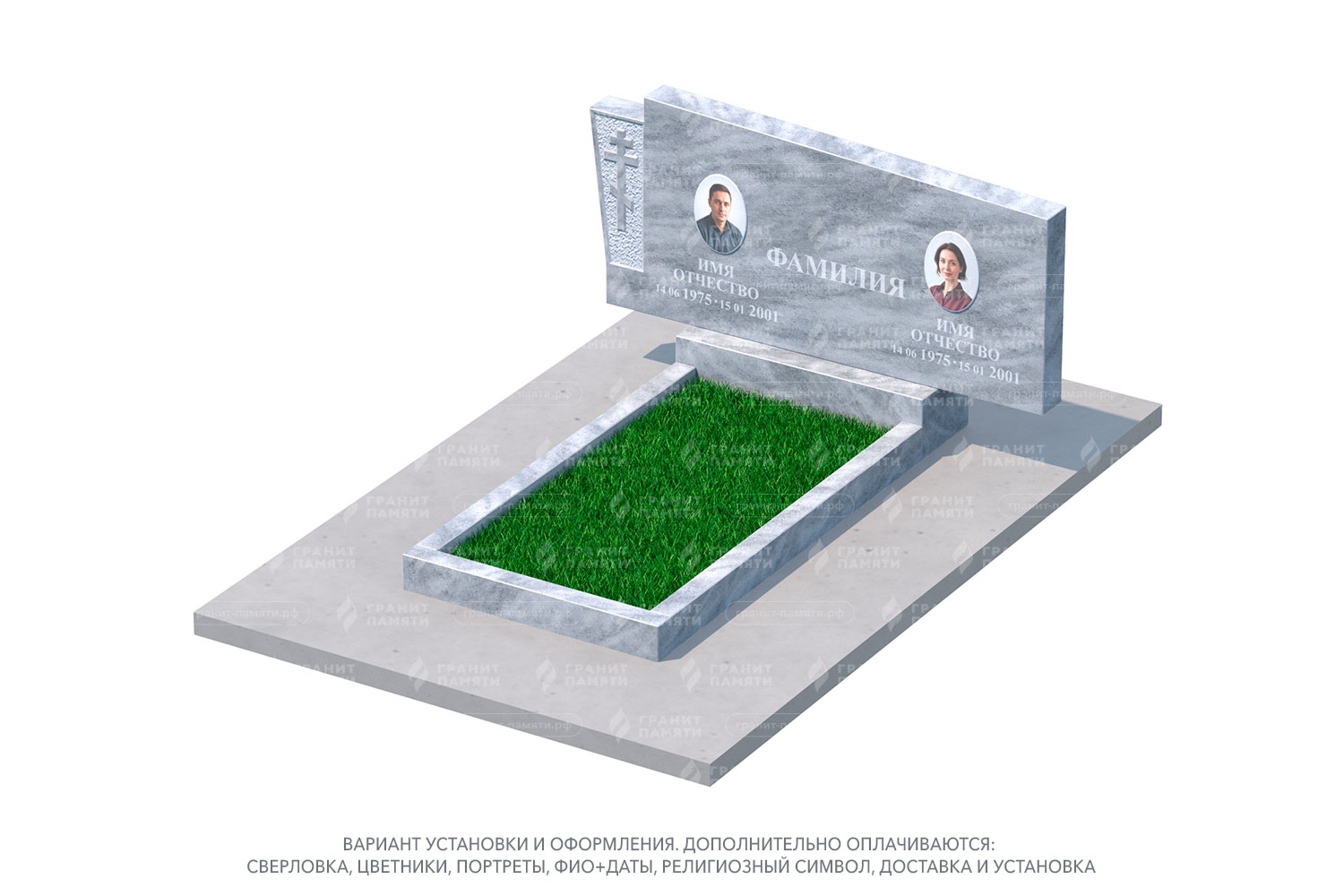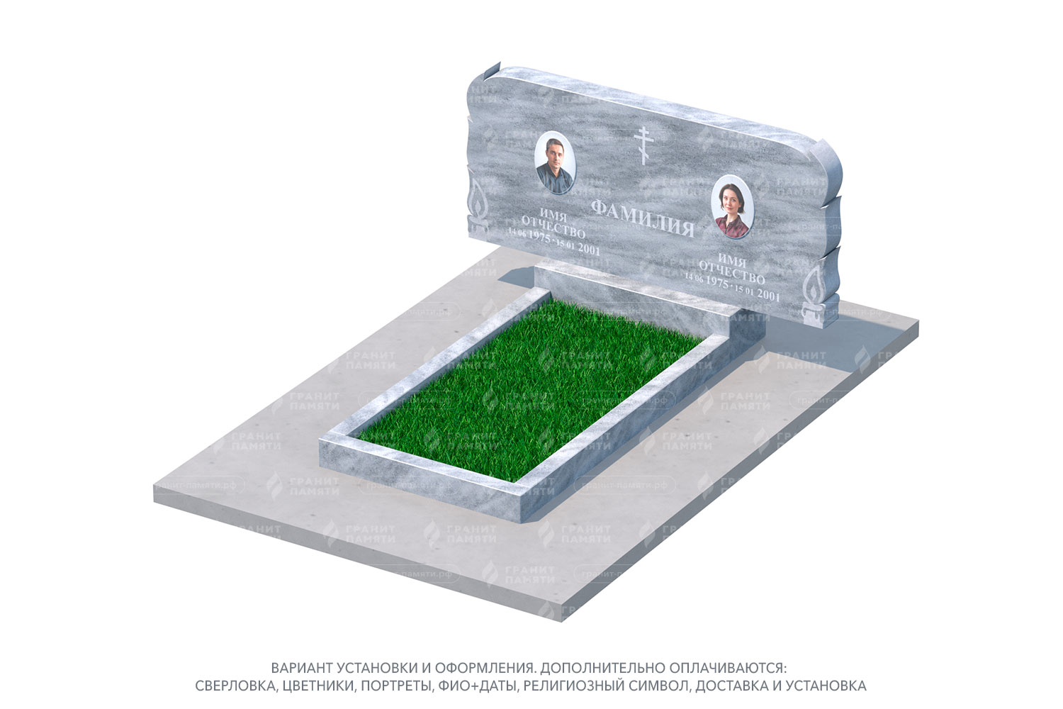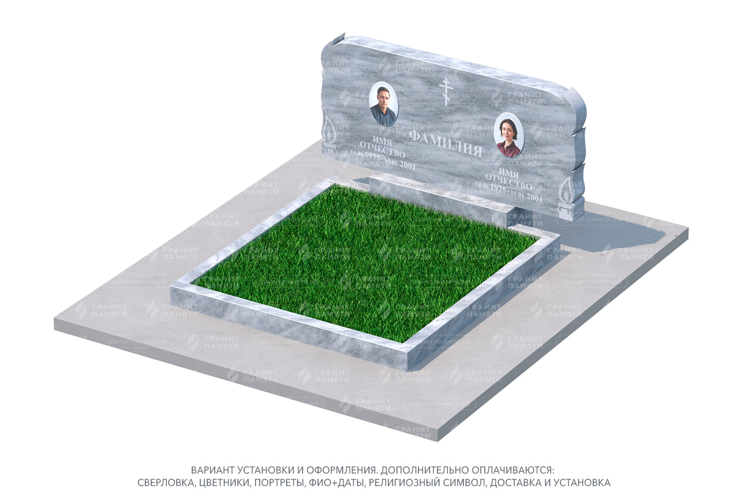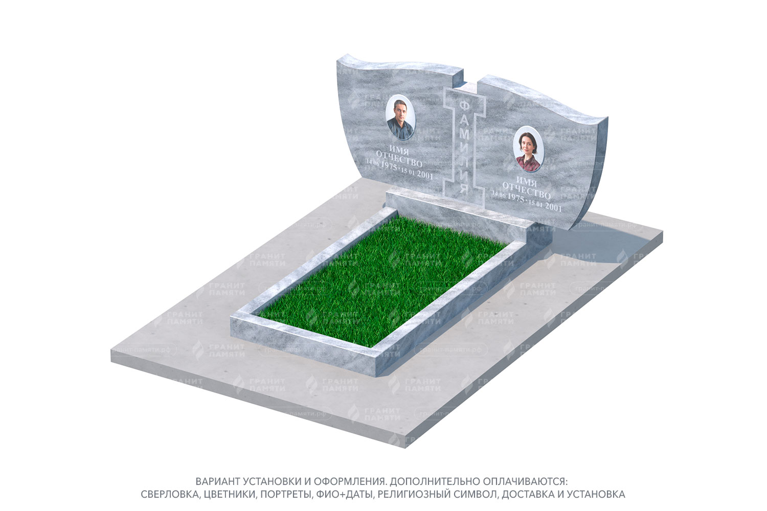 Какие элементы можно добавить к двойному памятнику?