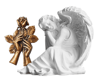 Ключевой элемент — стела Тумба, цветник или надгробная плита Портрет — гравировка, стекло, керамика Облицовка из натурального камня Цоколь и ограждение из гранита Столики и скамейки Вазы и лампадки из натурального камня Скульптуры и бронзовые элементы